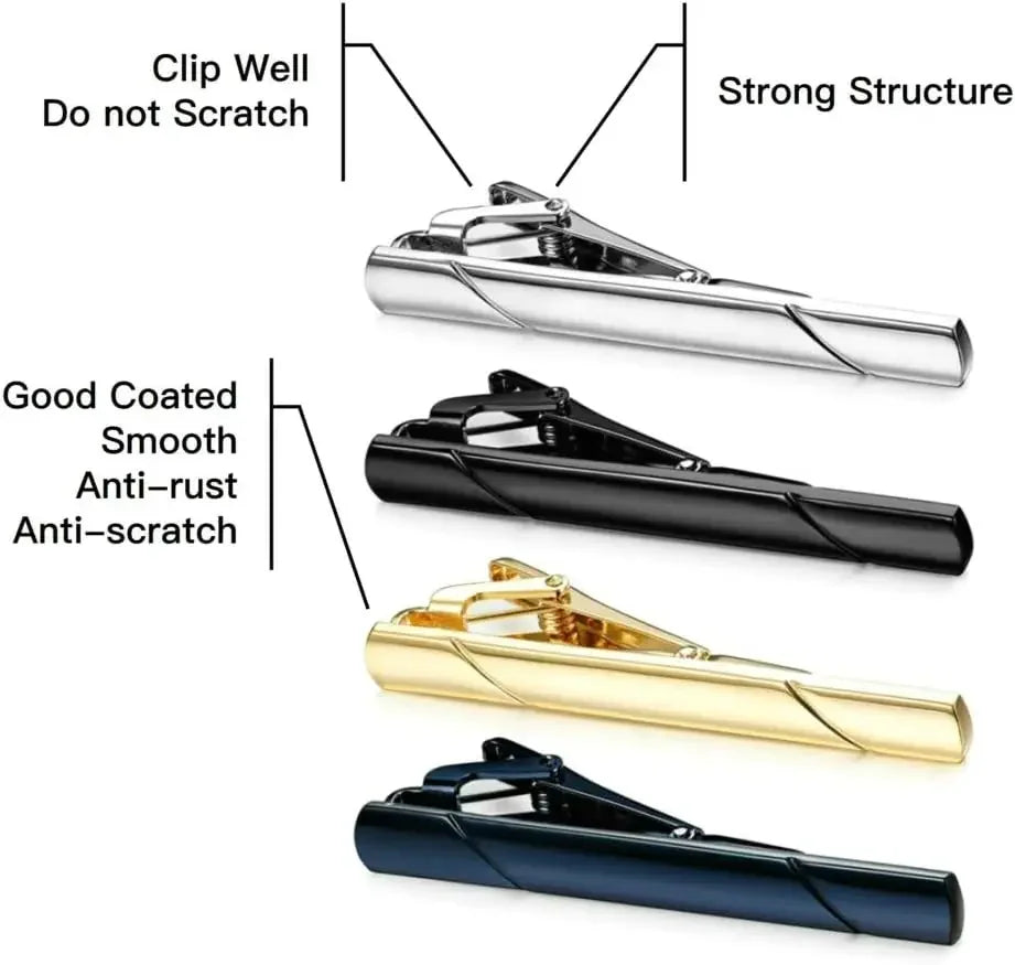 (Pack 4 Pieces ) Tie Clips for Men, Black Gold Blue Silver Tie Bar Set for Regular Ties, Luxury Box Gift Ideas novedad